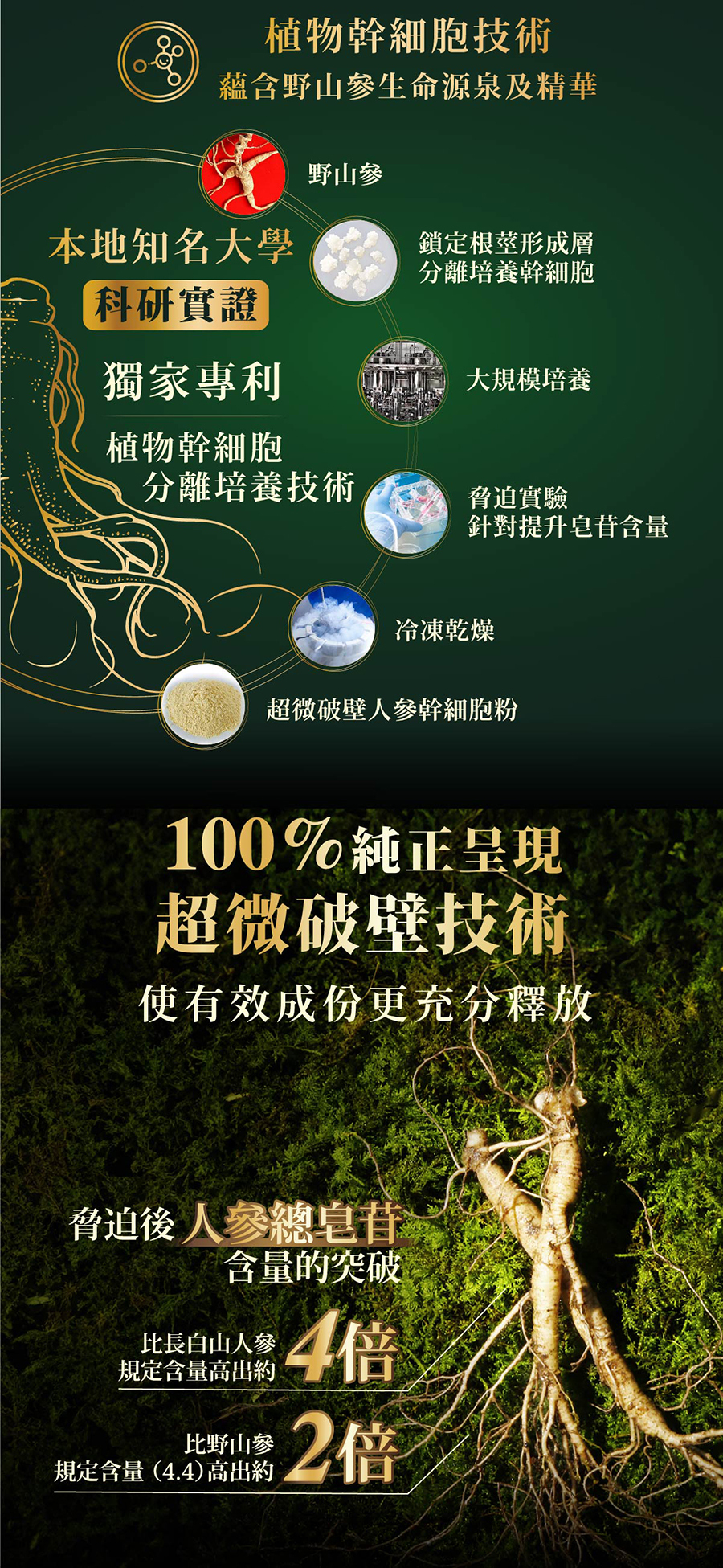 | 主要成份 | 人參組織培養物超微破壁粉(高人參皂苷含量) |